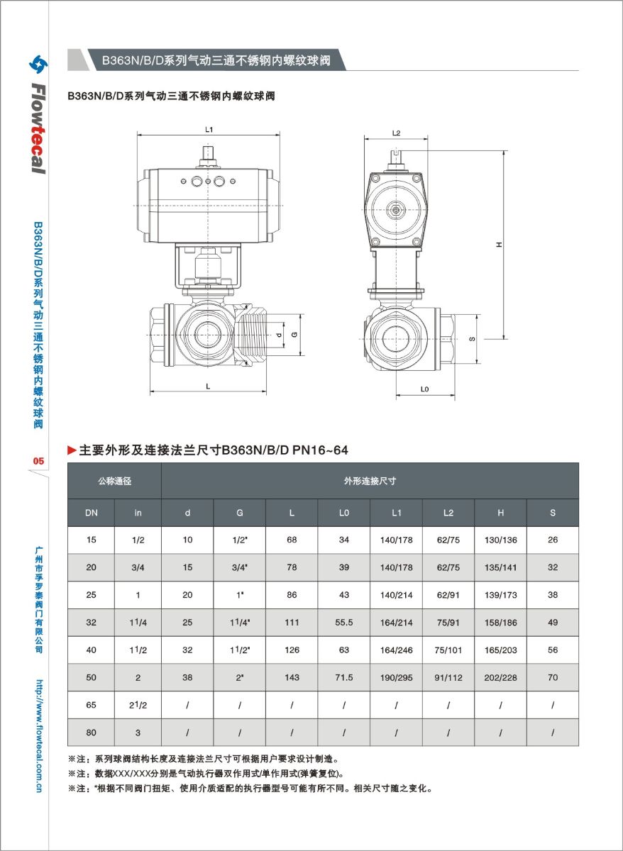 • B363N/B/D系列 气动三通不锈钢内螺纹球阀