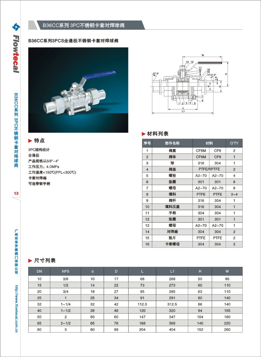 B36CC系列 3PC不锈钢卡套对焊球阀